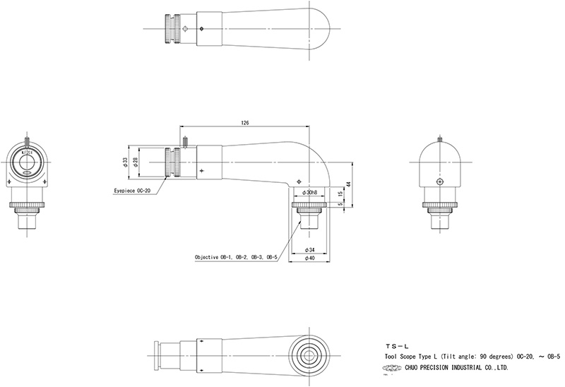 TS-L type is a Tool Scope with microscope tube tilt angle of 90 degrees.