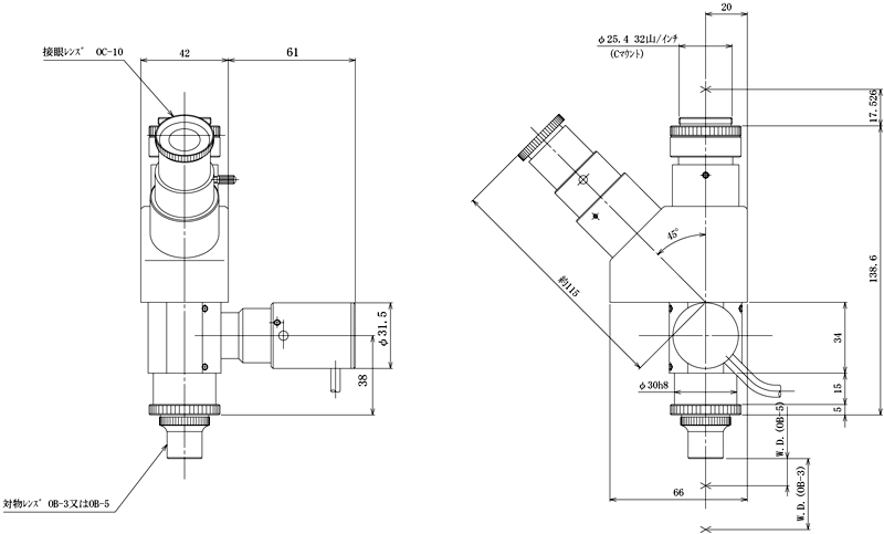 ※ 综合倍率是在工作显微镜(机械筒长163mm)上的组合。