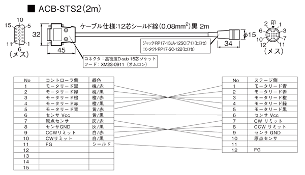 コントローラ/ドライバとステージを接続するケーブル類です。
