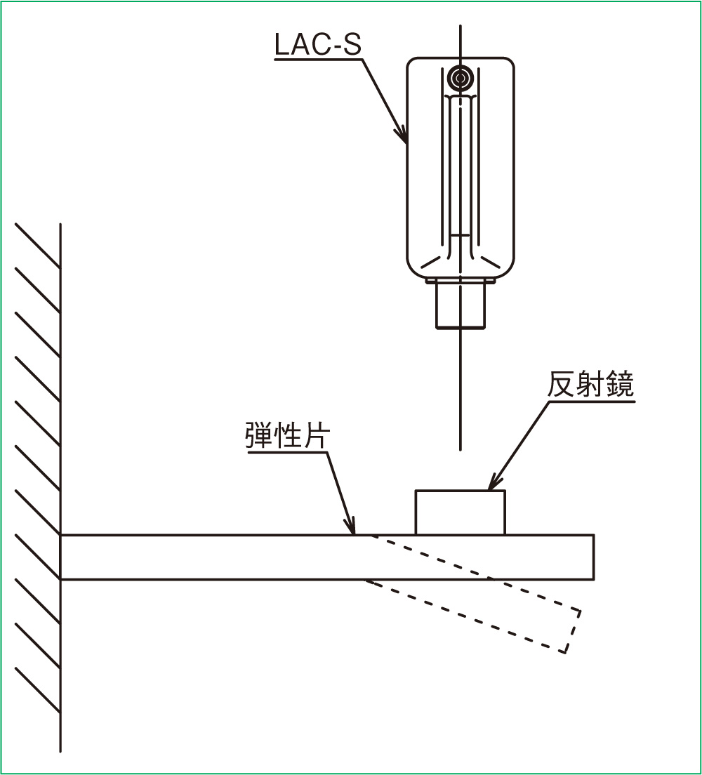 この平行ビームは測定用ミラー(M5)により反射され逆回りの円偏光になります。再びミラー(M4~ M1)を経て1/4波長板に入ります。このときに逆回りの円偏光が紙面に対して垂直なS偏光になり、今度は偏光ビームスプリッタ(PBS)で反射され位置検出用センサ(CMOS)に入ります。