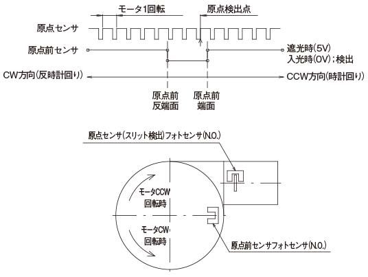 当社自動ステージは、原点/原点前/リミットセンサの有無、動作論理が異なるものがあり、