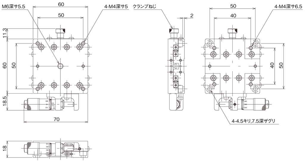 Manual stage by using HG-VCR method for the moving guide and aluminum alloy as main material, achieving both rigidity and lightweight.