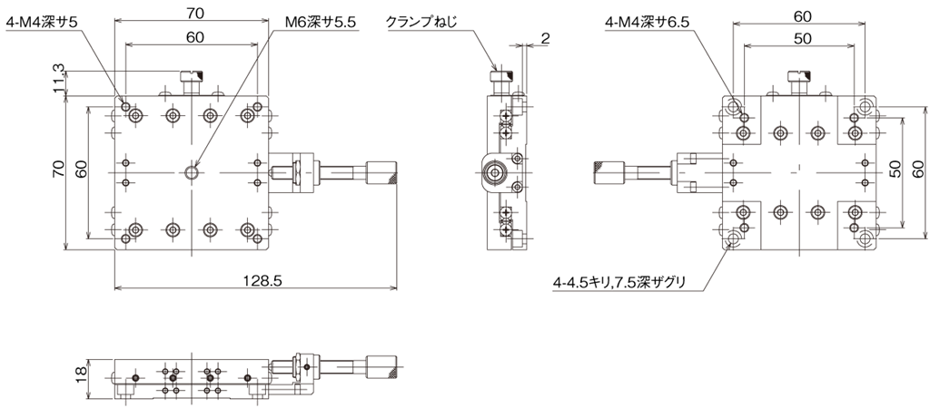 Manual stage by using HG-VCR method for the moving guide and aluminum alloy as main material, achieving both rigidity and lightweight.