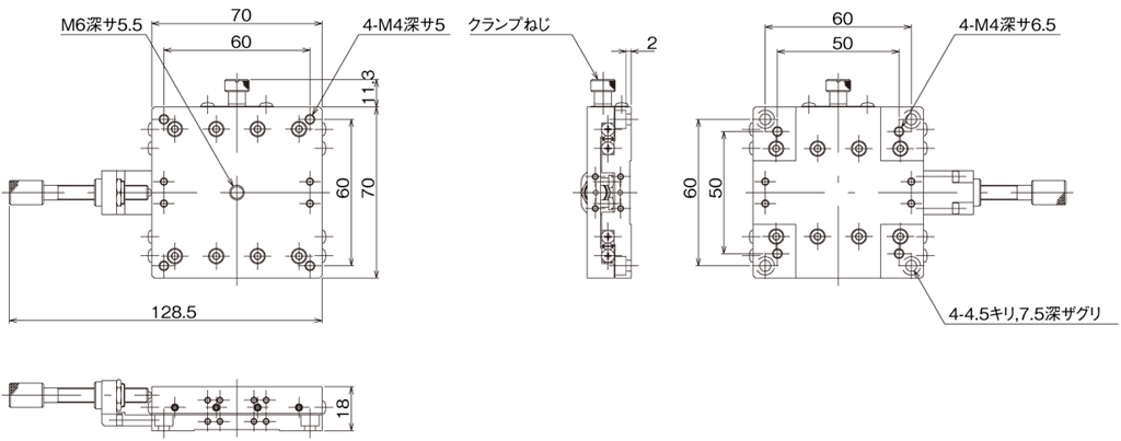 Manual stage by using HG-VCR method for the moving guide and aluminum alloy as main material, achieving both rigidity and lightweight.