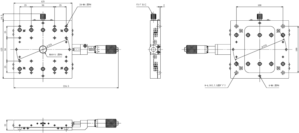 Manual stage by using a V-groove and cross rollers (V-CR method) for the moving guide.