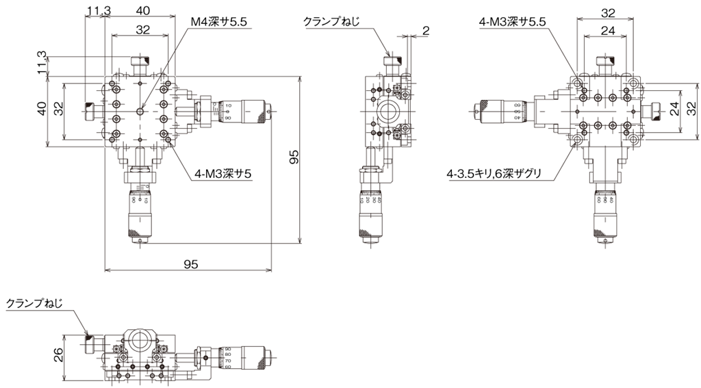 High-grade aluminum XY axis stage 40 x 40 (Standard type)