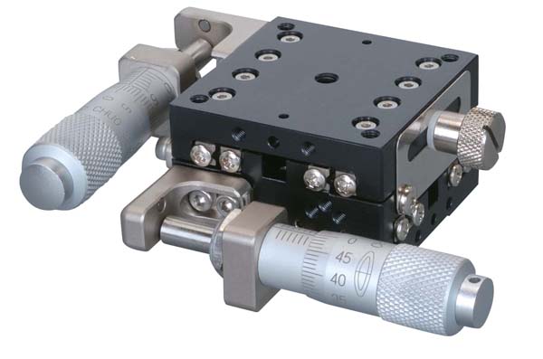 Manual stage by using HG-VCR method for the moving guide and aluminum alloy as main material, achieving both rigidity and lightweight.