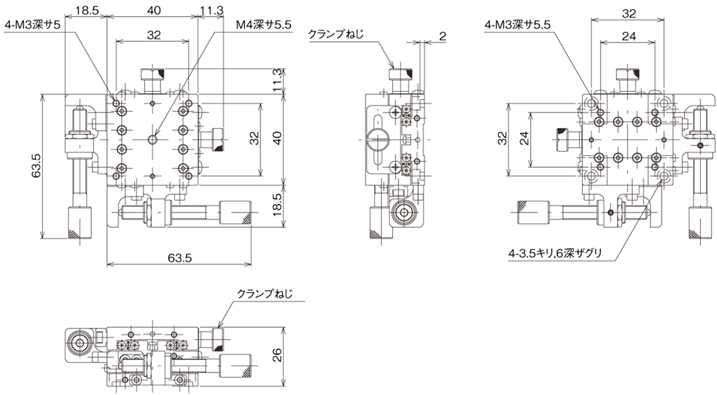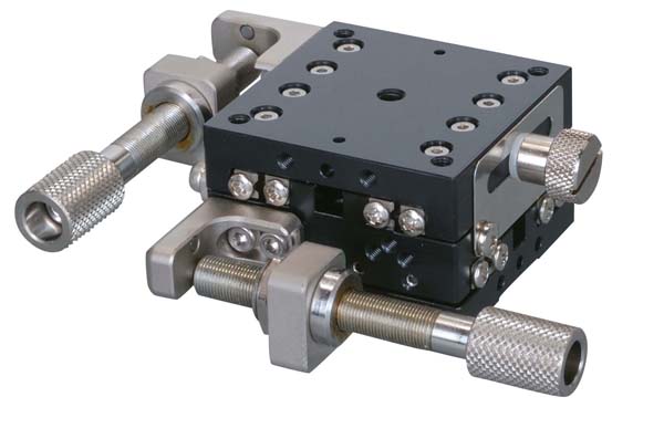 Manual stage by using HG-VCR method for the moving guide and aluminum alloy as main material, achieving both rigidity and lightweight.