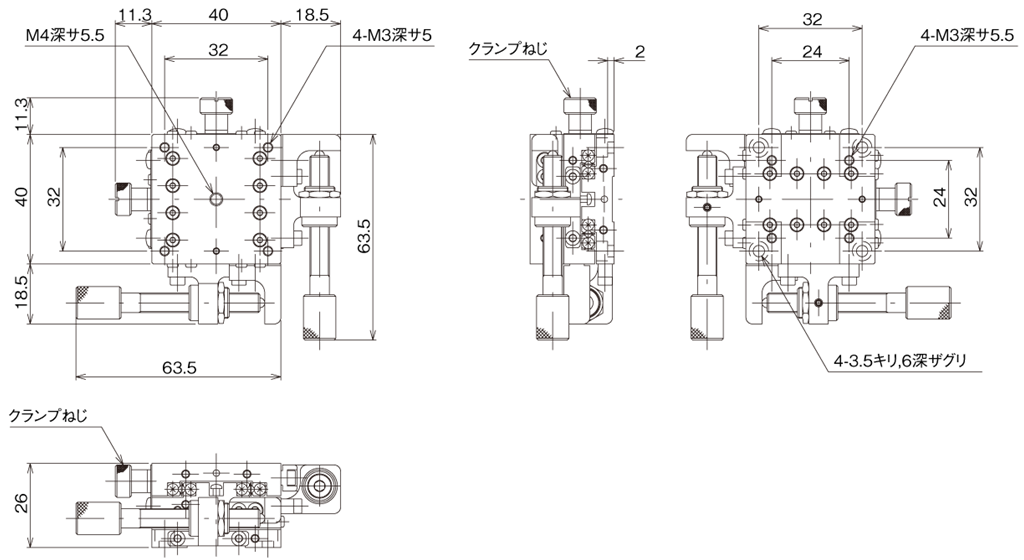 Manual stage by using HG-VCR method for the moving guide and aluminum alloy as main material, achieving both rigidity and lightweight.