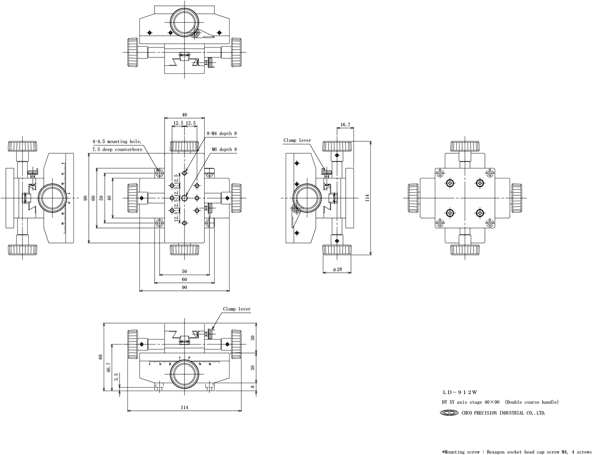DT XY axis stage 40 x 90 (Double coarse handle)