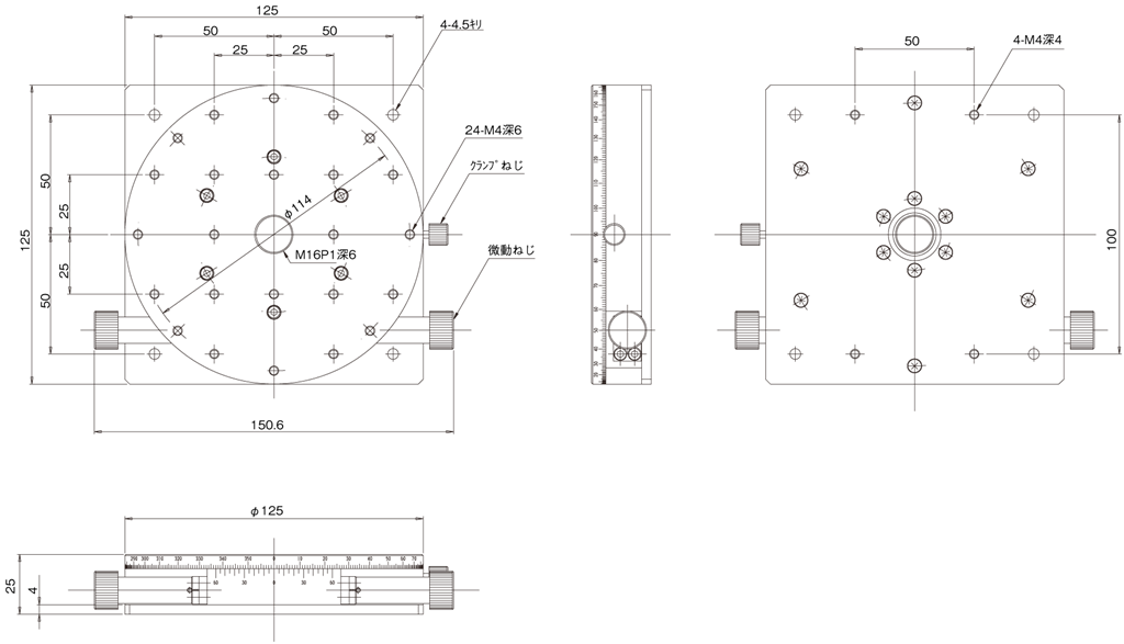 A sliding guide is used for moving guide, allowing 360 degrees fine movement.
