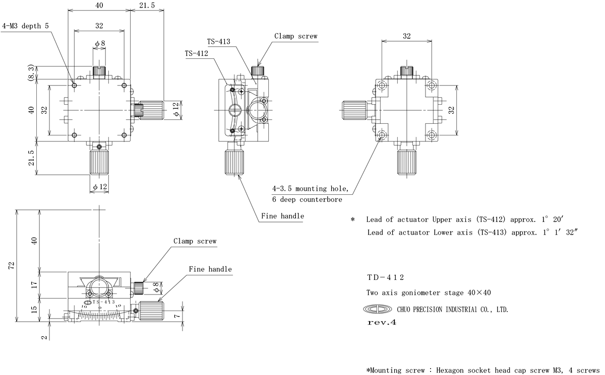 Mounting screw : Hexagon socket head cap screw M3, 4 screws