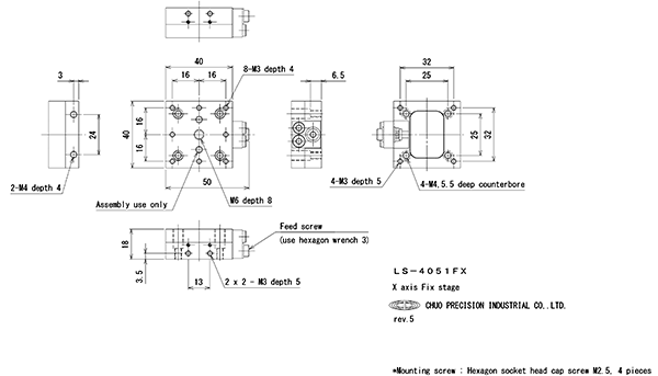 Standard accessories Mounting screw : Hexagon socket head cap screw M2.5, 4 screws