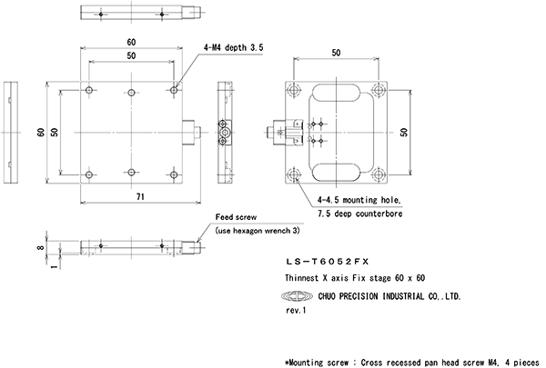 Standard accessories Mounting screw : Cross recessed head machine screw M4, 4 pieces