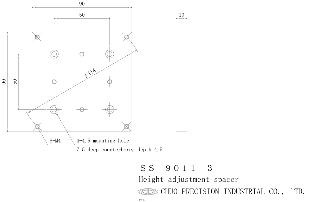 (Example) If you need a size of 90 mm x 90 mm and a thickness of 80 mm, use SS-9011-80.