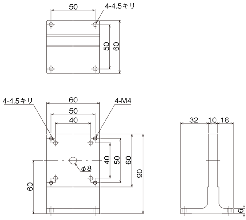 The T-shaped bracket can be installed on either the front or back side. Also, since the center of the load does not extend outside the outer shape of the bracket, there is no large unbalanced load.