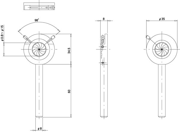Iris diaphragm has been specifically designed for general laboratory use. All offer exceptionally smooth operation over the lever travel, from maximum to minimum aperture (approximately 90°). Lever actuators are available in two styles: stainless steel “pin” or plastic “tab.” All standard series diaphragms have blued spring steel leave construction and black housing finish.